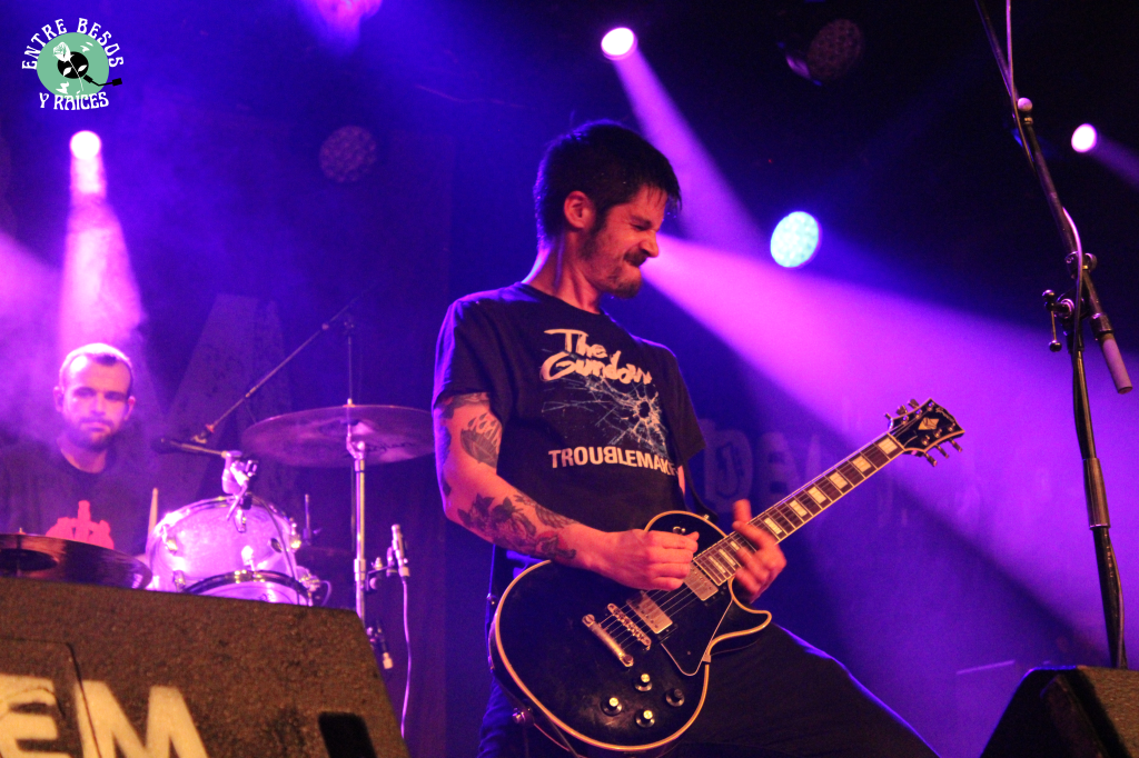 El punk oi rural de Rotten XII, y el punk hardcore de Brigade Loco nunca defraudan. Y así fue. Actitud y compromiso con el territorio, con su lengua y con su clase. Diversión y buen hacer. Tanto Poggi, voz de Rotten XIII, como Lander, de Brigade Loco, intercambiaron colaboraciones, dando muestra de la afinidad entre ambas bandas, que van a hacer juntas próximamente una mini gira por Alemania.