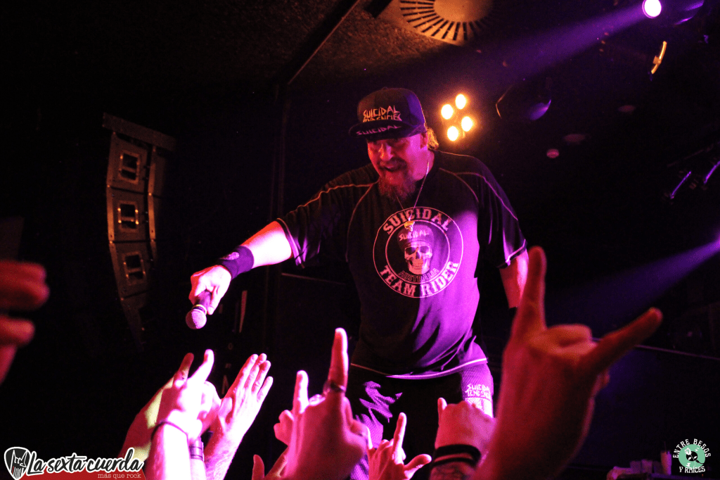 Mike también aprovechó para lanzar un mensaje de apoyo a toda la gente que libra guerras sociales e individuales, que las sufre y de las que quiere salir, antes de acometer “War inside my head”. Y, obviamente, no se puede concebir un bolo de Suicidal sin un gran pogo, a pesar de que la edad de los presentes, no bajaba de los treinta y muchos. Locura total.