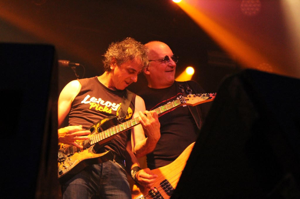 Sin embargo, en esta gira, Josu ha decidido dar un paso a la primera línea de las tablas. ¡Y vaya decisión! Totalmente acertada según lo visto en Pamplona. Un Josu pletórico llenó el escenario en cada tema, dando a la banda una presencia que no había tenido hasta ahora. Lo que nos hace preguntarnos, ¿Cómo pudo estar Josu tantos años encorsetado detrás de la batería? No sabemos si esta decisión de ocupar el frente del escenario será solo para esta gira, o ya se quedará para siempre. Veremos.