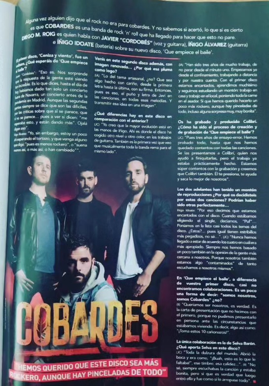 Alguna vez, alguien dijo que el rock no era para cobardes. Y no sabemos si acertó, lo que sí es cierto es que COBARDES, es una banda de rock´n´roll que ha llegado para hacer que esto no pare. Diego M. Roig habla con Javier “Cordobés” (voz y guitarra), Íñigo Álvarez (guitarra) e Íñigo Idoate (batería) sobre su nuevo disco, QUE EMPIECE EL BAILE.